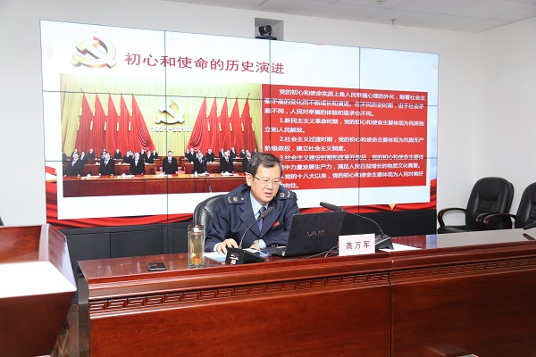 溯经典,悟初心。高万军书记就如何理解“初心”与“使命”认真进行研究,在古代经典《诗经》《论语》《道德经》中找到对“初心”与“使命”的经典论述,使大家对“初心”与“使命”的理解更加深入、更加具体。他谈到,共产党员的“初心”与“使命”就是习近平总书记在2019年5月31日“不忘初心、牢记使命”主题教育工作会议上所强调的“为中国人民谋幸福,为中华民族谋复兴,是中国共产党人的初心和使命,是激励一代代中国共产党人前赴后继、英勇奋斗的根本动力”。只有正确理解了共产党员的“初心”与“使命”就是为中国人民谋幸福,为中华民族谋复兴,才能为化思想为行动指明方向。为了进一步阐释共产党员“初心”与“使命”的重要价值,高万军梳理了从新民主主义革命时期至党的十八大以来,党的“初心”与“使命”的内涵是如何与时俱进、不断丰富的。通过梳理历史脉络更加清晰的认识到,在当代共产党员的“初心”与“使命”就是习近平总书记所说的“为中国人民谋幸福、为中华民族谋复兴”。
