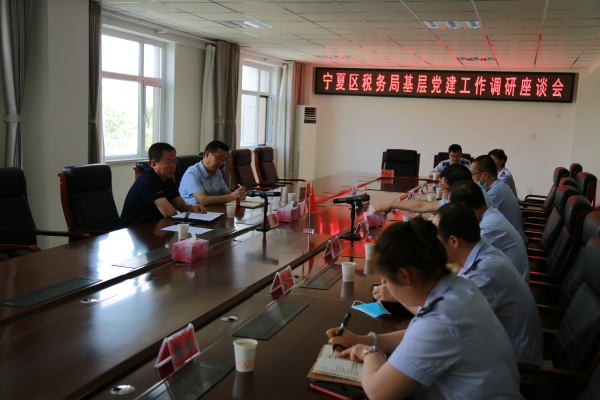 5月21日,国家税务总局宁夏区税务局党建工作处处长曹雪峰一行,深入中宁县税务局调研党建工作,中卫市税务局党委委员、总会计师郑建华陪同调研。