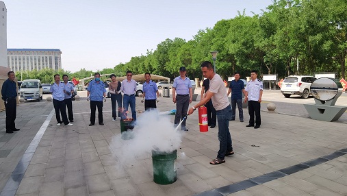 安全知识讲座结束后,该局组织干部职工在单位院落空旷地区进行了消防安全演练,利用油漆桶点燃木柴,教官现场手把手指导该局干部职工各类灭火器的正确使用方法。通过教官的讲解和示范,干部职工纷纷上前操作灭火器进行灭火,大家的表现得到了杨国涛教官的充分肯定。