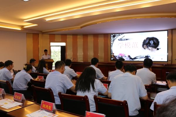 在“学模范”和“讲故事”环节,焦小丽、赵晨同志为大家分享了宁夏银川市兴庆区税务局二分局李平同志和固原市公安消防支队特勤中队战斗员张怀亮的先进事迹。在场的全体干部职工无不为模范人物的精神所感动,深深体会到了恪尽职守、忠诚担当、爱国奉献的精神。