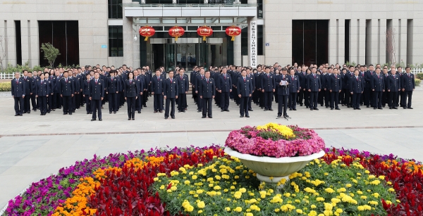 9月30日上午,为庆祝新中国成立71周年,宁夏区税务局机关举行“向国旗敬礼,做合格党员”迎国庆升国旗仪式。区局党委书记、局长马建民出席升旗仪式,党委委员、总审计师于琬河主持升旗仪式。