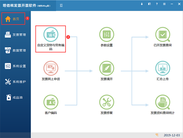 答:在增值税发票开票软件(税务UKey版)首页点击右上方