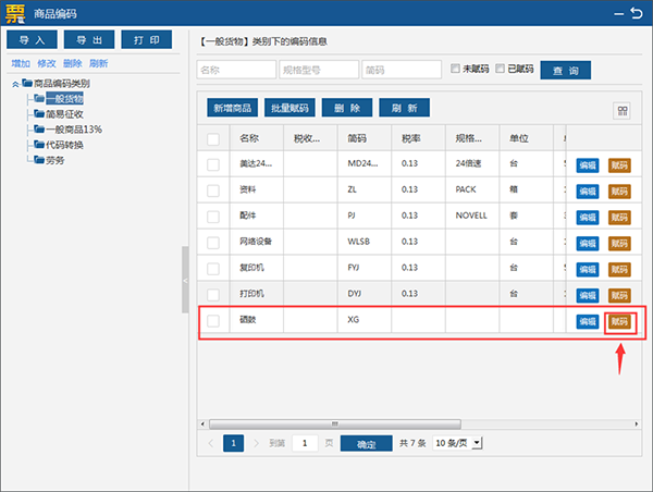 答:依次点击“系统设置-基础编码设置-自定义货物与劳务编码”进入商品编码界面,左侧选择一个商品编码类别,右侧点击“新增商品”按钮。在新增商品输入框中输入名称,自动生成简码,继续输入规格型号、单位、单价,点击“立即提交”。点击要赋码的商品行最右侧“赋码”按钮。在弹出的商品和服务税收分类编码表中选择准确的编码,或者通过查询搜索来选择要赋的商品编码。勾选是否使用优惠政策,确认税率,是否含税标志后,就可以确认提交了。这时返回商品编码页面,看到该商品赋码成功,显示对应编码。如需批量赋码,可勾选多个需要赋码的同类商品,点击“批量赋码”按钮,赋码完成即可。商品编码模块也提供导入,导出和打印功能。