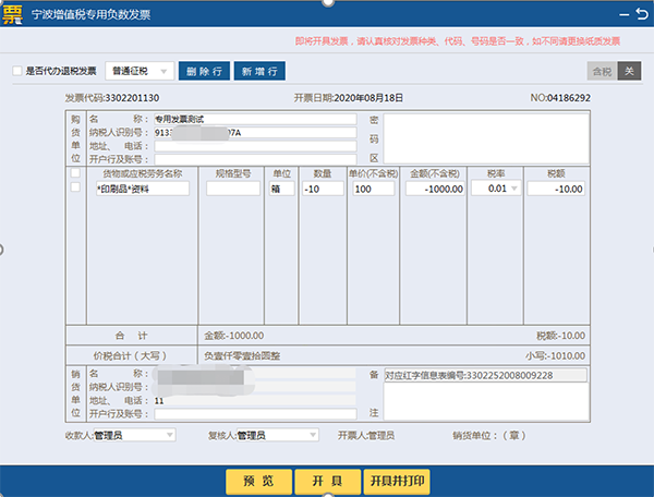 答:如果发生销货退回、开票有误、应税服务终止等情形,需开具红字发票进行冲销。先填开增值税专用发票红字信息表,区分购买方申请和销售方申请。