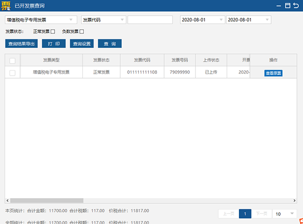 增值税电子专用发票开具成功后,开票方和受票方均可查看与下载增值税电子专用发票版式文件。