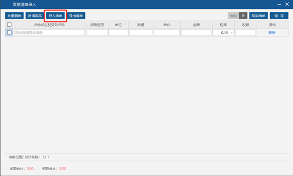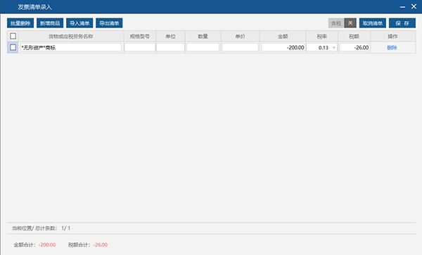 红字信息表填开支持批量导入红字发票信息表的项目信息,点击“清单”按钮进入红字信息表清单录入界面。见图40。