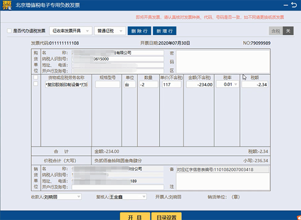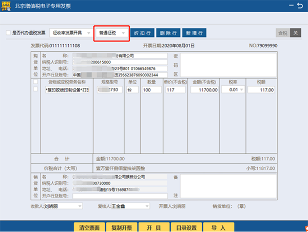 注意:增值税电子专用发票最多支持开具100条,货品超过8行,自动生成商品清单。