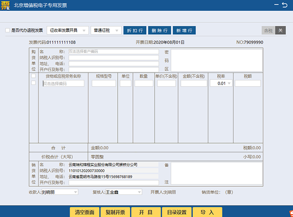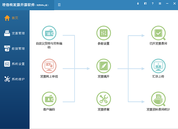 下面主要介绍开票方领取税务UKey后使用增值税发票开票软件(税务UKey版)开具增值税电子专用发票涉及的主要操作步骤。具体内容分为以下几个部分: