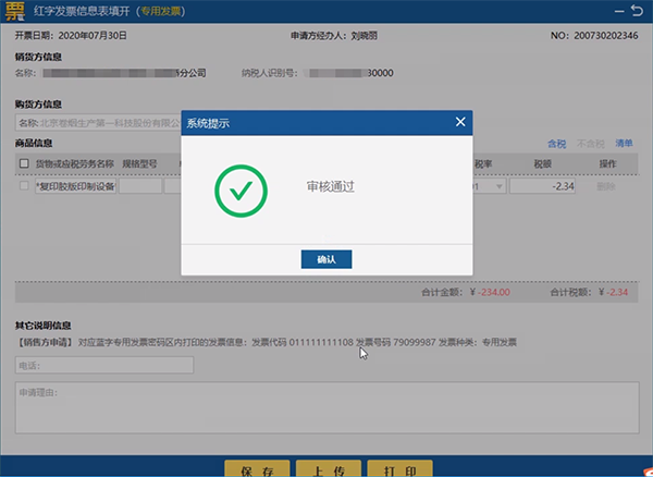 红字发票信息表填写比对蓝字发票确认信息无误,上传后直至审核通过即可使用。见图45。