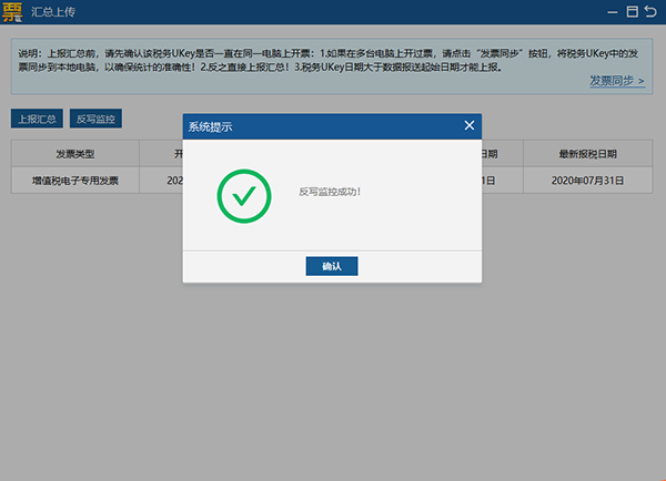在开票软件中发票上传成功后,需登录增值税申报系统进行增值税申报,完成申报后,再次登录开票软件,系统会自动进行反写监控操作。