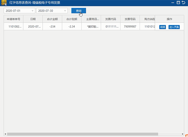 在发票网上申领界面可以查询发票信息,选择好起止时间等条件,点击“查询”,就能查询到已申领的发票。