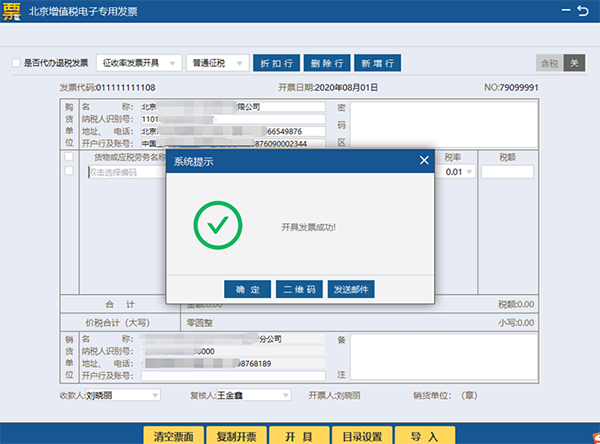 根据实际需要可以选择二维码,或者发送邮件的方式,将已开具好的发票交付给购买方。
