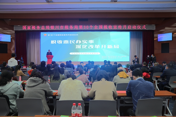 4月1日上午,国家税务总局银川市税务局在市民大厅采取“现场+网络直播”的方式,组织举办了第30个全国税收宣传月启动仪式。120多人参加了现场启动仪式,5万多名纳税人、缴费人和社会各界人士通过微信、微信公众号、市民大厅和各商场电子屏同步收听收看了启动仪式,并进行点赞互动。