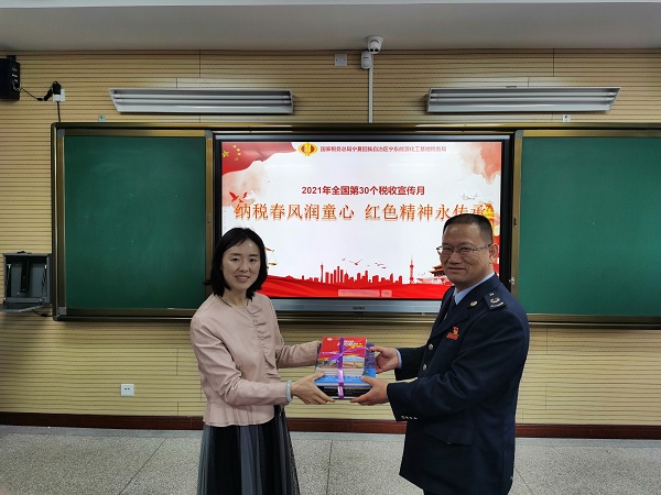 为深入推进党史学习教育,4月16日,宁东能源化工基地税务局与宁东学校联合开展了以“纳税春风润童心 红色精神永传承”为主题的税法宣传进校园暨赠书活动,向广大青少年宣传税收知识的同时,上好党史学习教育课。