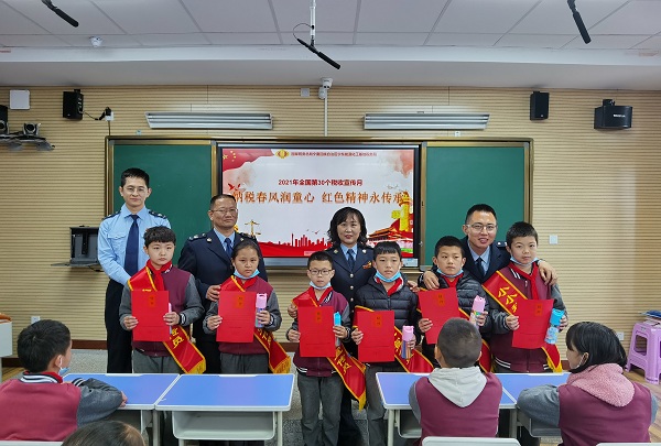 此次税法宣传进校园活动,不仅调动了孩子们学习党史、关注税收的兴趣,更有利于发动学生们将党的历史和税收知识带进每个家庭,引导大家树立正确的历史观、民族观、国家观、文化观。