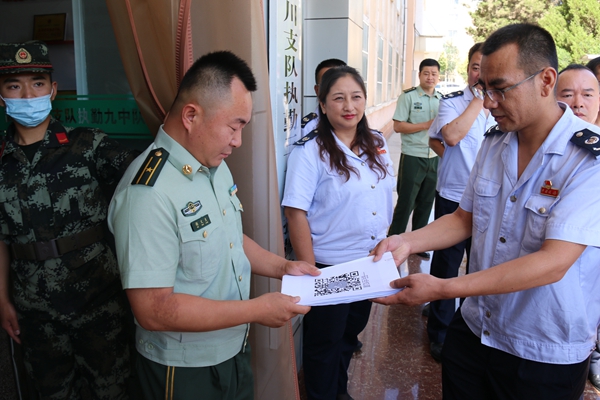 ——走访慰问表达拥军情怀。7月29日,综合保税区税务局党委书记、局长丁国庆带领全体党员干部,走访慰问了武警宁夏总队银川市支队执勤三大队,为部队官兵送去日常用品和矿泉水等慰问品,同时还为部队官兵们介绍了个人所得税的优惠政策和申报流程,并向他们送上税法宣传折页。部队官兵们纷纷表示,个税的学习弥补了他们平时申报个税知识的空白,希望以后可以经常同税务部门学习交流。慰问中,双方本着“优势互补、互帮互利、联手共赢、平等自愿”的原则,签署了《军民共建协议书》,今后将充分发挥军政军民团结的特有政治优势,结对开展军民共建活动,大力弘扬军爱民、民拥军的光荣传统,巩固发展坚如磐石的军政军民关系,牵引带动双方交流合作,使共建活动更加深入化、制度化、常态化,激发党员干部爱国之志,增强党员干部宗旨意识和奉献精神,以达成共同促进共同建设的工作目标。兴庆区税务局党委委员、副局长赵伟带领相关人员走访慰问了驻银川市北塔雷达部队,为部队官兵送上节日的祝福和慰问品,感谢人民子弟兵为社会的稳定、人民的幸福生活作出的积极贡献。部队主任郝文缙、参谋长俞有才等领导向慰问组介绍了部队建设和官兵基本情况,并讲解了国防军事知识。
