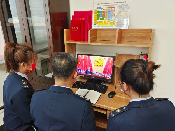10月16日上午,中国共产党第二十次全国代表大会在北京人民大会堂隆重开幕。吴忠市利通区税务局组织全体驻守的干部职工举行升国旗、看直播和谈感悟系列活动。同时,在封控区、管控区、值班室、居家防疫等地,税务干部通过手机、电脑、电视收看党的二十大开幕会盛况,聆听习近平总书记所作的报告,及时学习了解大会精神,进一步提振信心、倾情奉献,永远跟党走,奋进新征程,以实际行动庆祝党的二十大胜利召开!(王懂刚)