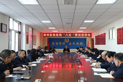 近日,原州区税务局召开法治宣传教育会议暨“八五”普法启动大会。会上回顾总结了“七五”工作取得的成效,重点部署“八五”法治宣传教育工作。局党委书记、局长张万金主持会议并作部署讲话。