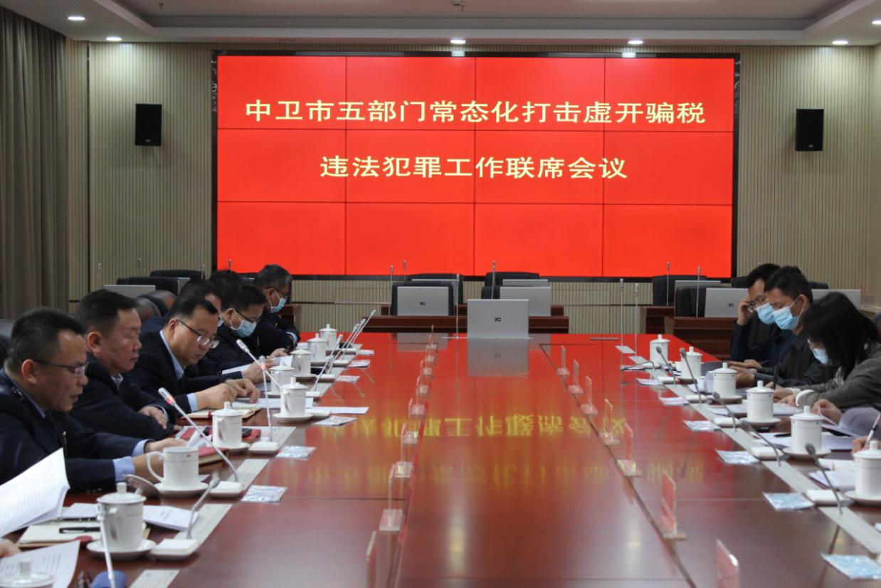 3月31日,中卫市税务局、中卫市公安局、中卫市检察院、中卫海关、人行中卫市中心支行,共同召开中卫市常态化打击虚开骗税违法犯罪工作联席会议。