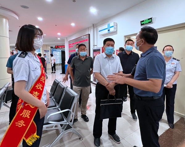 近日,吴忠市政协副主席蒋耀强一行10人,来到吴忠市利通区税务局办税服务厅视察指导工作,着重了解利通区税务局在落实大规模留抵退税、阶段性社保费缓征以及“个性化”服务团队开展定制服务等方面的汇报,蒋耀强对利通区税务局在落实新的组合式税收优惠政策、着力优化营商环境等方面给予了高度评价和充分肯定。下一步,利通区税务局将持续优化营商环境,加强办税务服务厅工作人员培训学习,全面提升业务技能,定期组织个性化服务团队进驻办税大厅,为纳税人提供高效便捷温暖的服务。