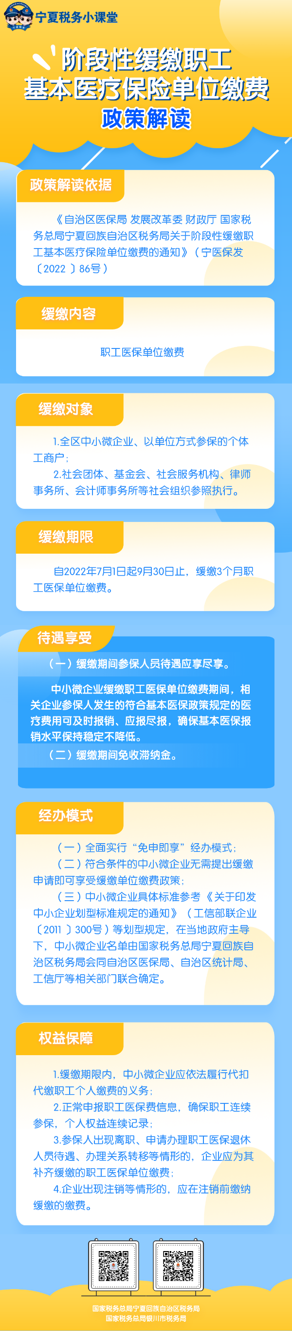 《自治区医保局 发展改革委 财政厅 国家税务总局宁夏回族自治区税务局关于阶段性缓缴职工基本医疗保险单位缓缴的通知》(宁医保发〔2022〕86号)