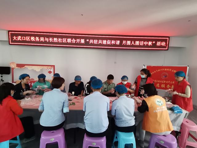 在中秋佳节即将到来之际,大武口区税务局组织团员青年与长胜社区联合开展“共驻共建促和谐,月圆人圆话中秋”为主题的庆中秋活动,活动以制作手工月饼、诗歌朗诵、观看民族团结相关视频、慰问困难党员群众等形式,进一步推动党史学习教育常态化开展取得实效。(图文 陈兵)
