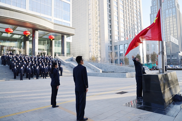 西风猎猎,红旗鲜艳,春节后首个工作日,银川市税务系统税务干部着装齐整,列队肃立,在庄严的国歌声中向冉冉升起的五星红旗行注目礼。通过升旗仪式,号召全市税务人员迅速收心拢神,在新的一年里以更加良好的精神面貌、更加昂扬的奋斗姿态,全力投入到税收工作当中。