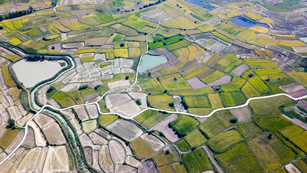 安徽省凤阳县小岗村的田野景象(2018年9月27日摄,无人机照片)。新华社记者 张端 摄