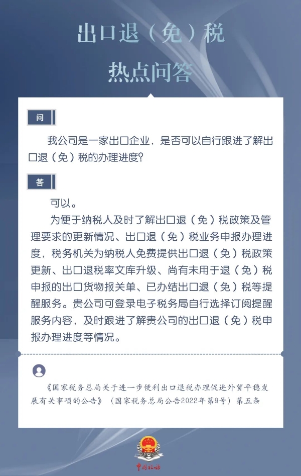 《国家税务总局关于进一步便利出口退税办理 促进外贸平稳发展有关事项的公告》(国家税务总局公告2022年第9号)
