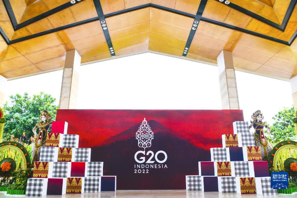 这是在印度尼西亚巴厘岛拍摄的二十国集团领导人第十七次峰会会场外的标识(2022年11月11日摄)。新华社记者 徐钦 摄