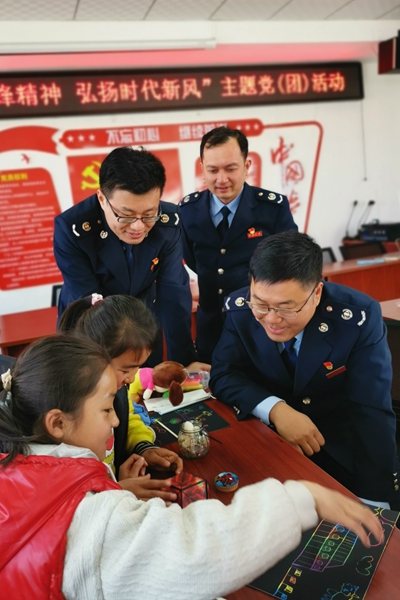 20多个留守儿童,20多份文具,一箱箱书籍,一件件体育器材,承载着青年志愿服务者们的期盼:愿书籍能指给他们翻越高山的路,愿健康能带给他们扬帆的勇气!当《学习雷锋好榜样》旋律响起,一张张笑脸,一声声欢唱,这幅温馨秀丽的画卷,在告诉我们,要矢志不渝地继承和弘扬“雷锋精神”,以实际行动在平凡的岗位上书写“税务蓝”的新时代雷锋故事。(文/张海丽 王凯 图/刘忠)