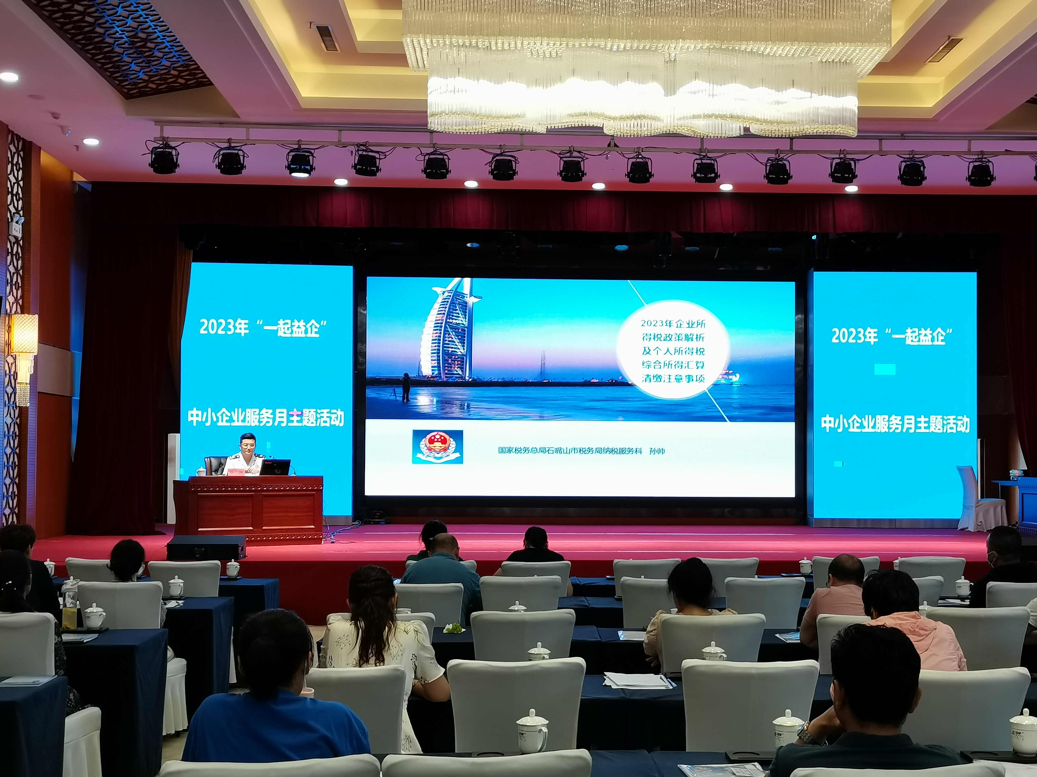 为进一步助力民营企业高质量发展,深入落实2023年“一起益企”中小企业服务月主题活动,2023年6月21日,石嘴山市税务局联合市工业和信息局在星海湖宾馆举办石嘴山市民营经济高质量发展培训班拉开帷幕,现场为100位民营企业家代表送上2023年企业所得税政策解析及个人所得税综合所得汇算清缴注意事项和纳税信用等级应用“税惠套餐”。(摄像:魏博雅)