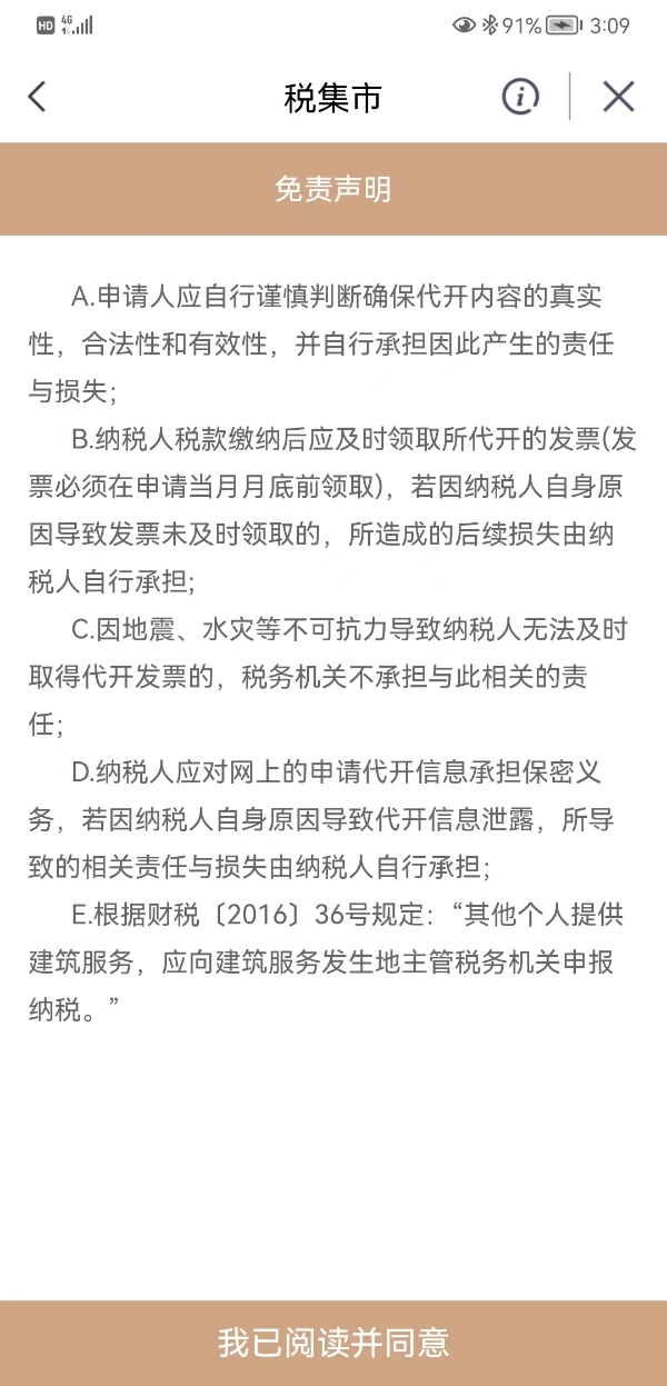 答:可以。打开“我的宁夏”政务APP点击首页“税集市”进入服务专区。需要注意的是:1.仔细阅读免责声明;2.对个人出租不动产、销售农产品免税发票、单笔代开金额或当月累计金额超过(包含)10万元暂不提供网上代开,需要到办税服务厅窗口办理。