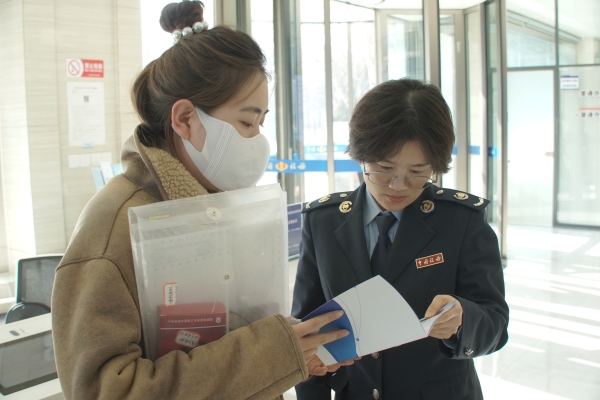 银川经济技术开发区税务局工作人员耐心为纳税人讲解税费优惠政策。
