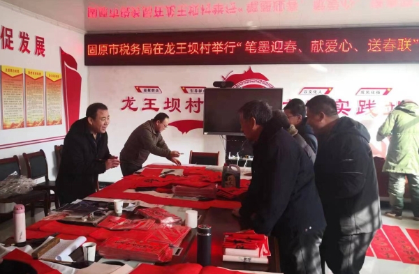 新春佳节将至,年味日趋浓郁。1月25日,固原市税务局积极响应群众诉求,组织爱好书法的税务干部到帮扶村开展“笔墨迎春、献爱心、送春联”活动,把新春的祝福送到基层群众身边