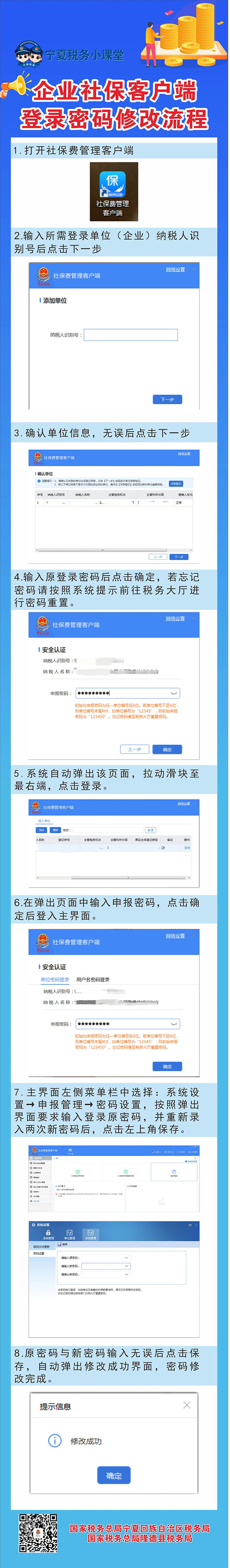 【宁夏税务小课堂】企业社保客户端登录密码修改流程
