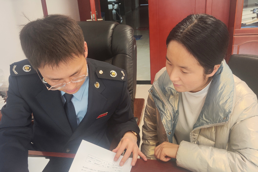 为提高企业环保意识,充分发挥绿色税制正向激励作用,宁东能源化工基地税务局针对企业特点,积极开展税收政策辅导。图为税务工作人员现场指导企业进行应税申报。