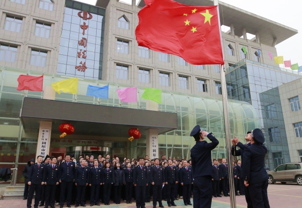 2月18日上午9时,固原市税务局在农历新年上班首日隆重举行升国旗仪式,全体干部振奋精神、整装待发集结在国旗下,礼敬国旗、祝福祖国。国歌雄壮、红旗飘扬,激励全体税务干部以踔厉奋发、笃行不怠的精神状态,全力投入到新一年的税收工作中。全市税务系统各县(区)局也同步举行了升国旗仪式。