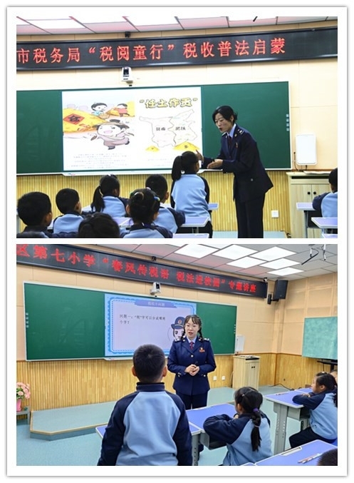 吴忠市税务局系统团委将“聚志愿微光 做税务暖阳”青年志愿服务驿站带进校园,并携手“小桔灯志愿服务团队”,“税务蓝”牵手“红领巾”,给孩子们开展了一堂生动有趣的税收普法启蒙公益课。吴忠日报的记者全程记录并附文“让税徽温暖千万家”。