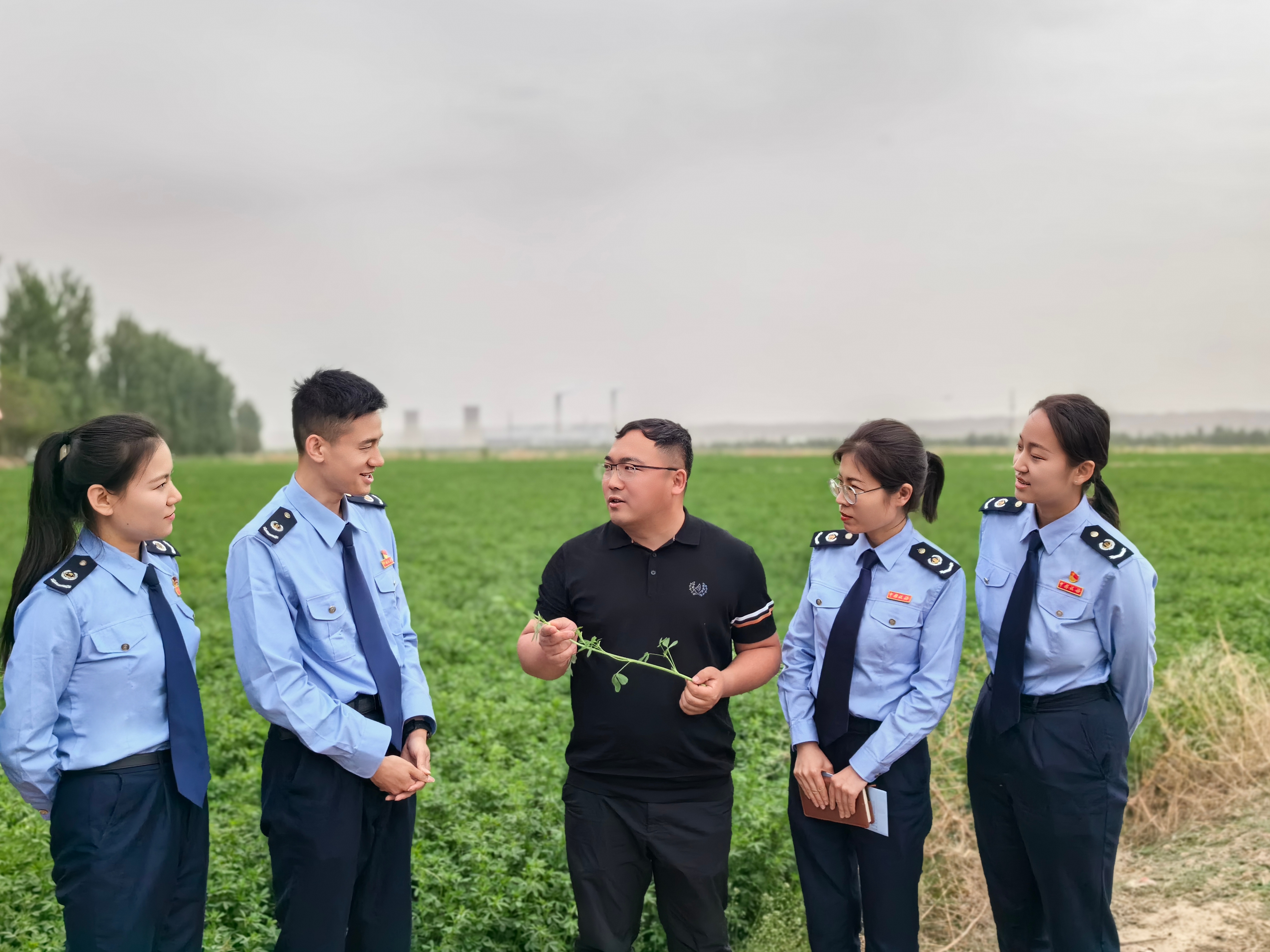 灵武市同心农业综合开发有限公司的种植基地里,一排排农机设备整齐划一,一亩亩茁壮生长的苜蓿翠绿挺拔、生机盎然。专业化、机械化农业生产的背后,凝聚着十年来锐意进取、大胆探索的付出和心血。跟随着汪威的脚步,青年干部们走进田间地头,在泥土的芬芳中体验乡村振兴带来的巨大变化。“同心农业综合开发有限公司的发展历程,也是我们中国乡村近十年来蓬勃发展的缩影!”青年干部马毓辰说道,“实现中华民族伟大复兴的中国梦,是我们新时代青年应该肩负的使命与担当。”