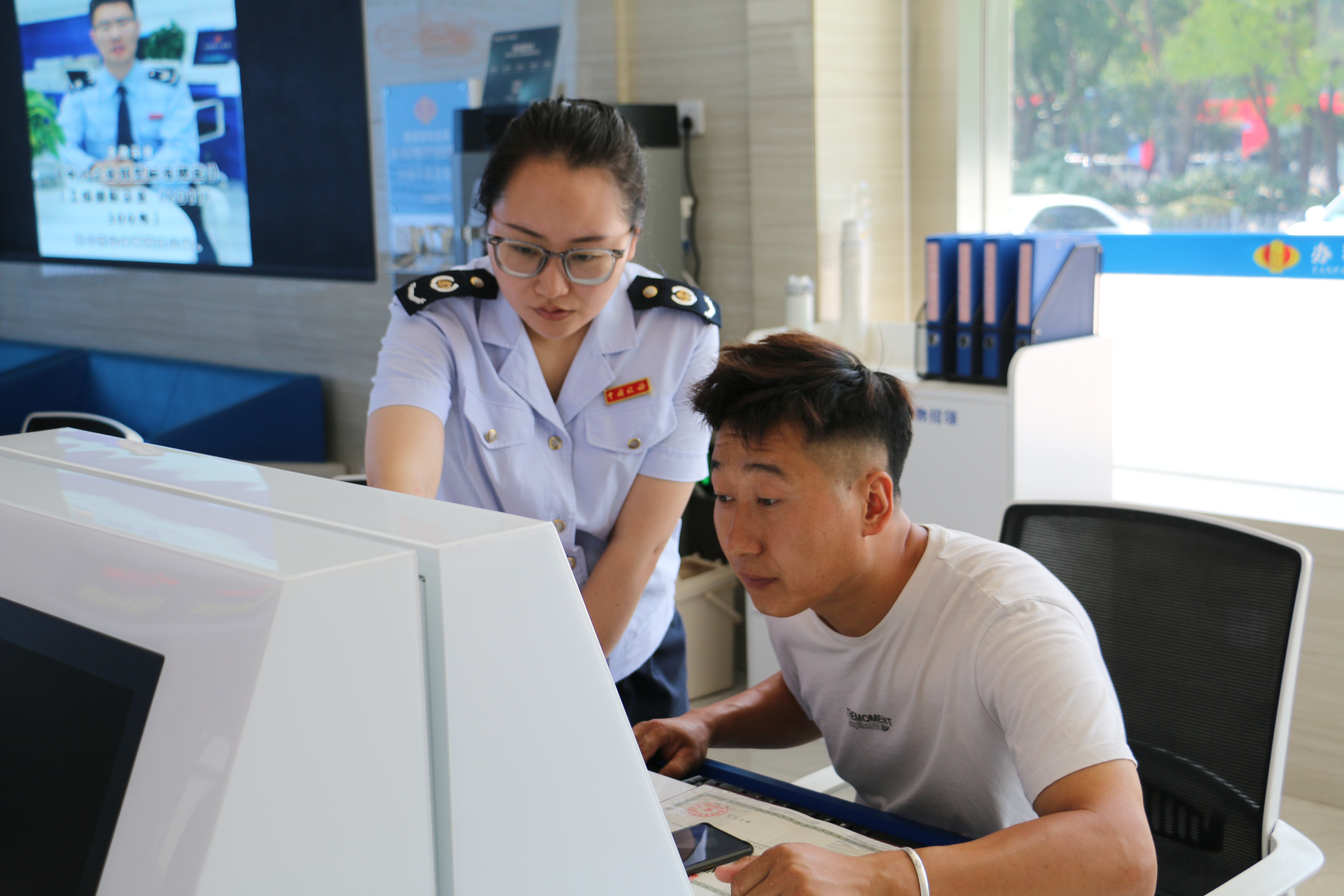 新办纳税人在办税服务厅自助办税区线上办理业务,导税工作人员耐心辅导操作。