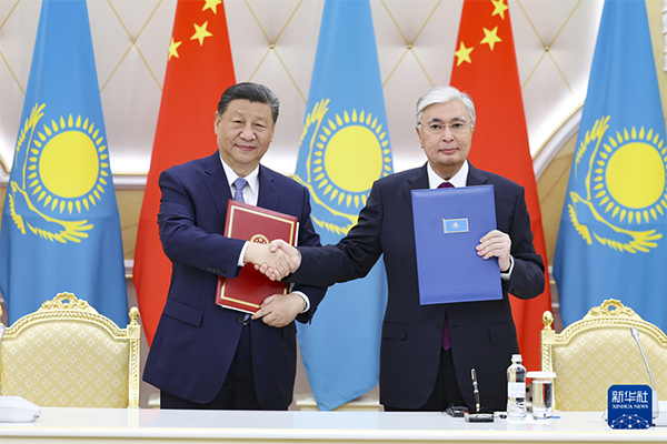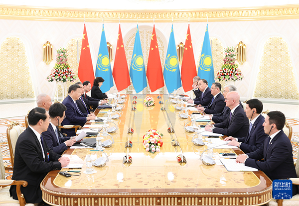 习近平指出,去年,我和托卡耶夫总统在西安和北京两次会晤,就中哈关系发展作出新部署新规划,引领中哈关系“黄金30年”快速发展。中方始终从战略高度和长远角度看待中哈关系,将哈萨克斯坦视为中国周边外交的优先方向和在中亚的重要合作伙伴,中方维护好、发展好中哈关系的意愿和决心坚定不移,不会因一时一事或国际风云变幻而改变。中国将永远是哈方可以倚重和信赖的好邻居好伙伴。中方愿同哈方继续加强天然气等传统能源合作,拓展光伏、风电等新能源合作,支持更多中国企业赴哈萨克斯坦投资,助力哈方将资源优势转换为发展能力,实现绿色、低碳、可持续发展。
