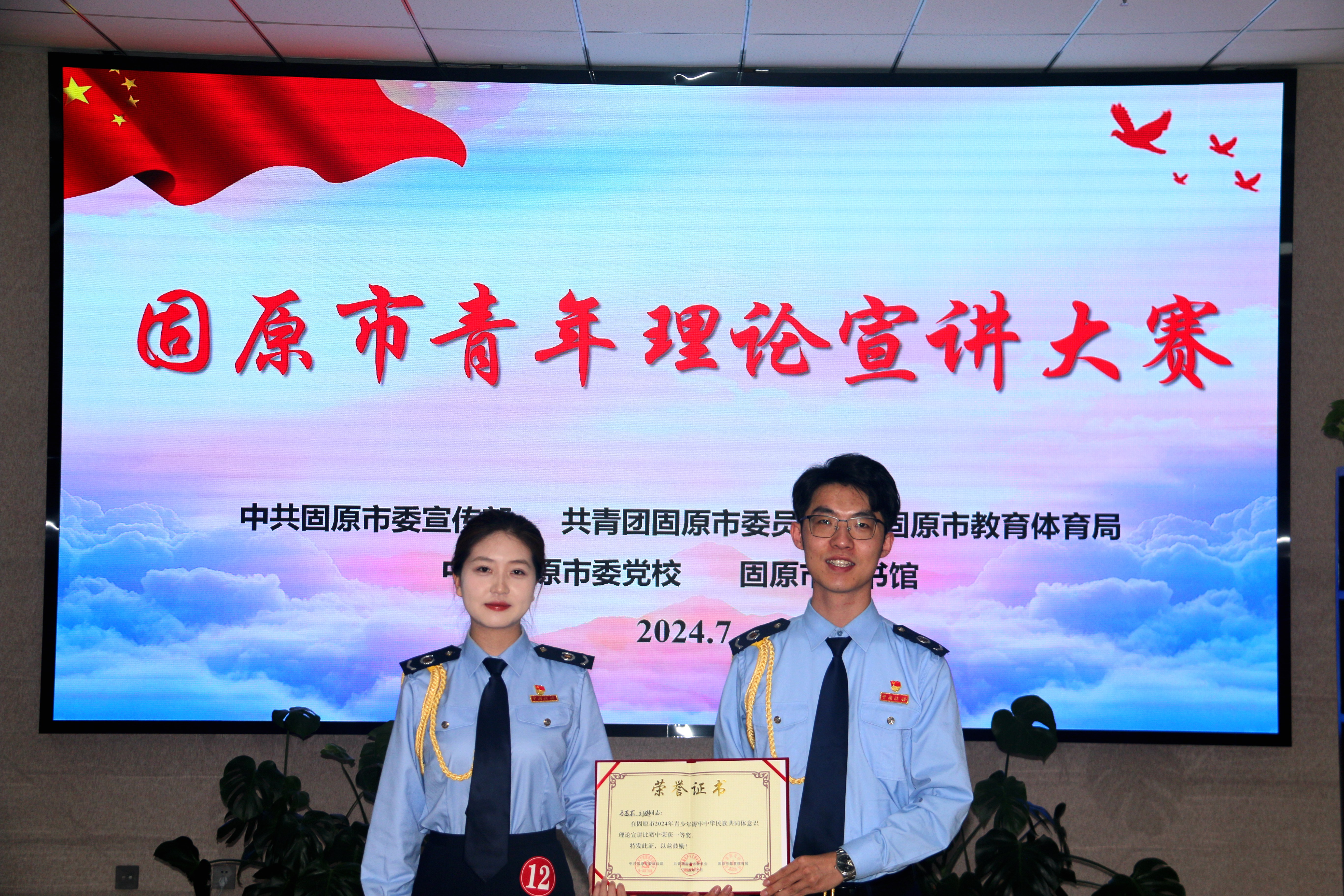 2024年7月31日下午,由中共固原市委统战部、共青团固原市委员会、固原市教育体育局联合举办的“石榴花开心向党 夯基育苗共成长”2024年固原市铸牢中华民族共同体意识理论宣讲比赛在固原市图书馆举行。经过激烈角逐,固原市税务局刘骁和马茜茹两名选手以《以湛蓝为底色 绘就民族团结新画卷》从全市20个代表队中脱颖而出,荣获一等奖。