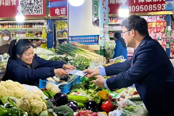 国家税务总局银川综合保税区税务局“风铃”税宣小分队走进热闹的菜市场,热情地向摊主和市民讲解社保政策,针对不同人群需求,耐心解答疑问,工作人员用积极行动践行为民初心,让大家笑容更多、心里更暖。(图文/赵静)
