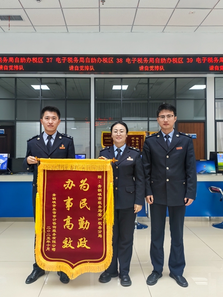 近日,青铜峡市税务局办税服务大厅接连获赠两面锦旗。这份赞誉,不仅是纳税人对税务工作的认可,更是对税务干部专业素养与高效服务的“点赞”。该局将以此为契机,持续优化服务流程、提升服务效能,为纳税人提供更优质便捷的服务体验。(王彬)
