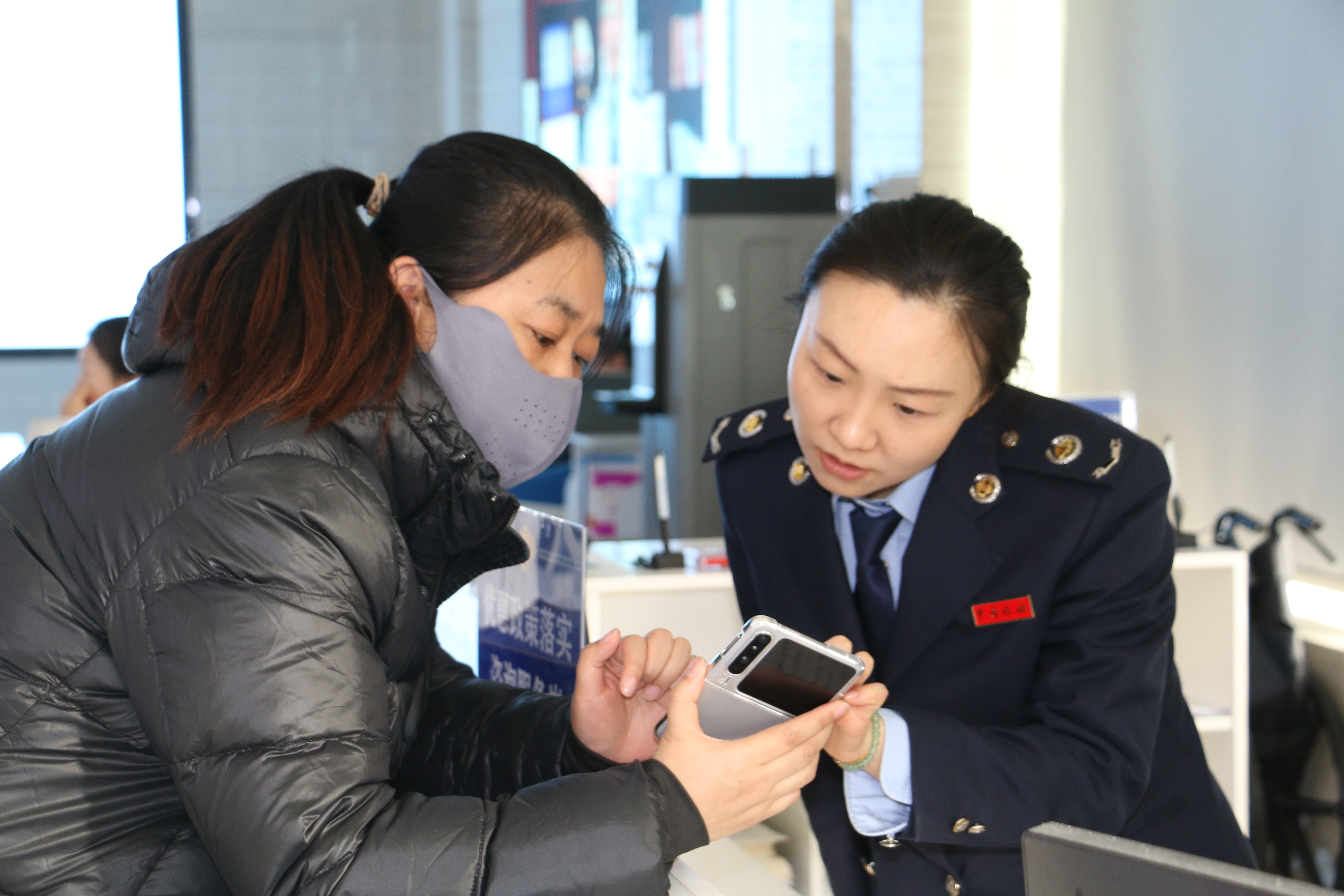 银川经济技术开发区税务局办税服务厅导税人员为纳税人提供清晰指引与解答,通过前置咨询与分流指导,确保涉税业务顺畅办理,让服务更显细致、高效。