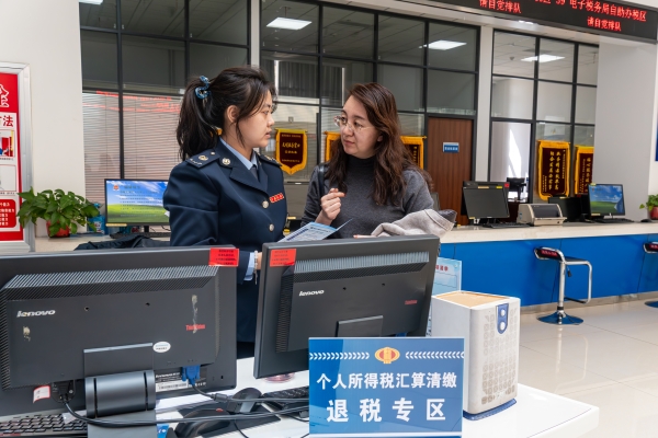近日,青铜峡市税务局在办税服务厅设立个人所得税汇算清缴退税专区,为纳税人提供操作指引和政策解读。现场工作人员“手把手”辅导纳税人通过个人所得税APP完成汇算清缴,帮助纳税人懂政策、会操作,切实提升办税便利度,获得纳税人好评。 (图/文 王彬)